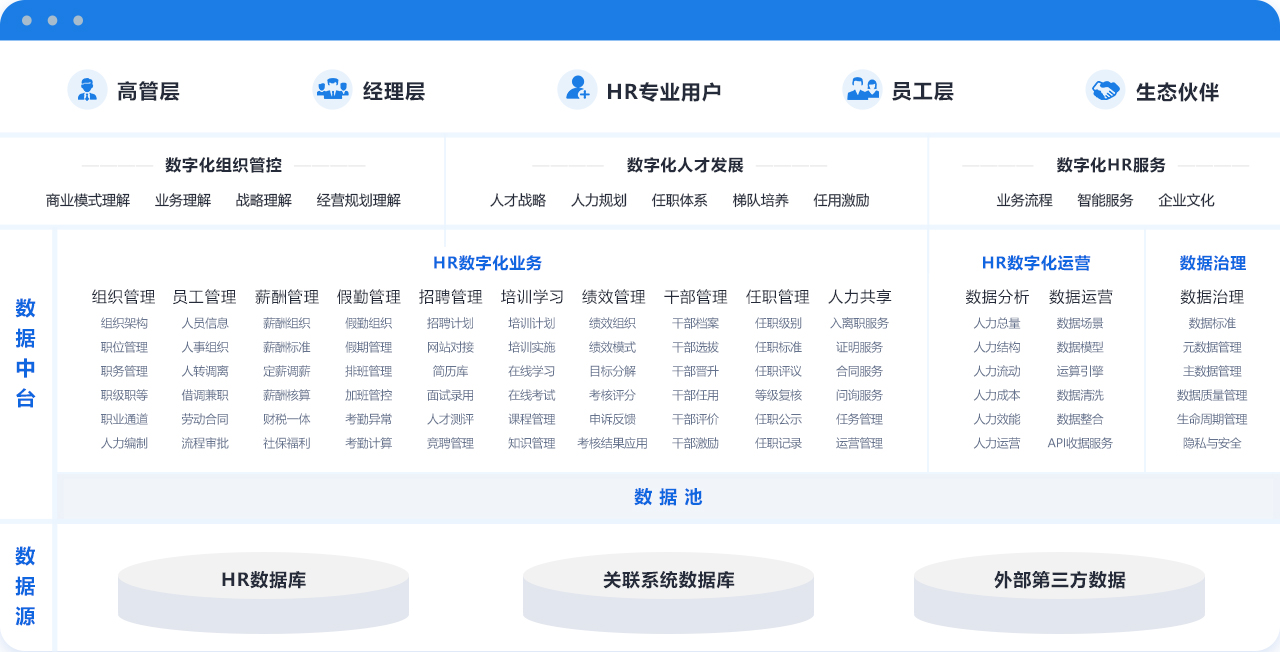 多维度战略分析:支撑业务战略到人力资源战略,业务战略分解线上化、模型化;人才运营分析,多维度、多层次、嵌入式智能分析、预测和决策