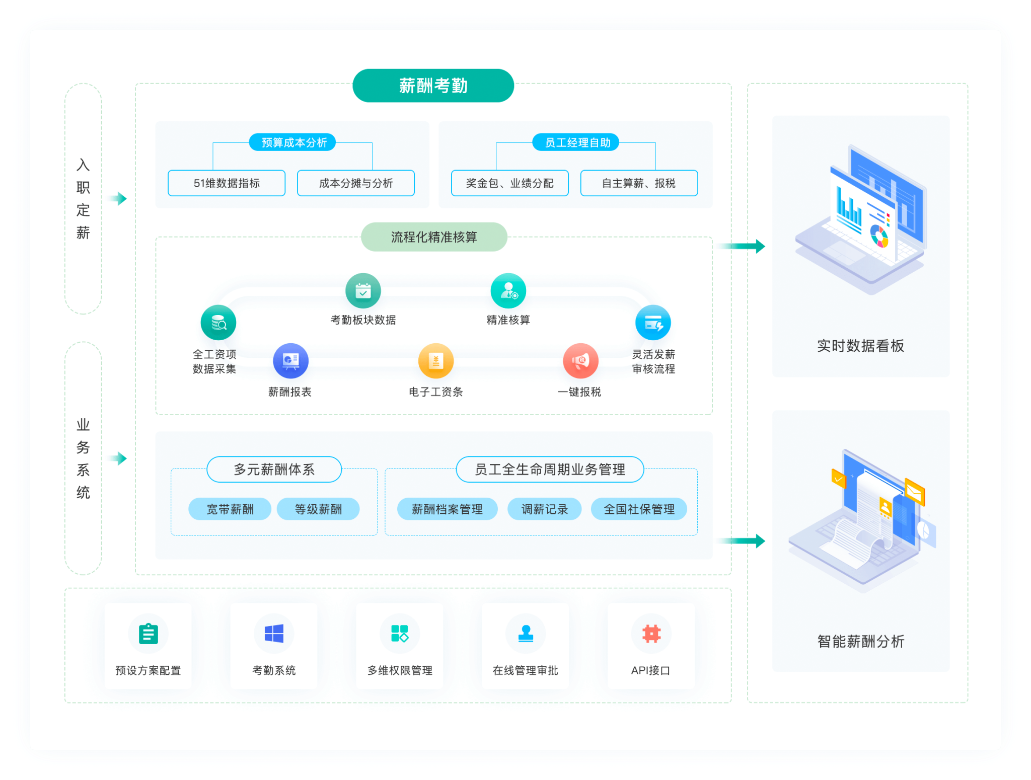 薪人薪事是一款专业数据化人力资源SaaS产品,以智能数据为基础,致力于帮助企业提升人力资源管理水平。系统秉承“信息提升效率、数据洞见未来”的设计理念,以充分、准确的分权限信息传递为考量,去除传统软件中诸多无效繁杂的流程,以及时、丰富的数据分析为洞察依据,帮企业摆脱只能靠传统经验决策的窘境。