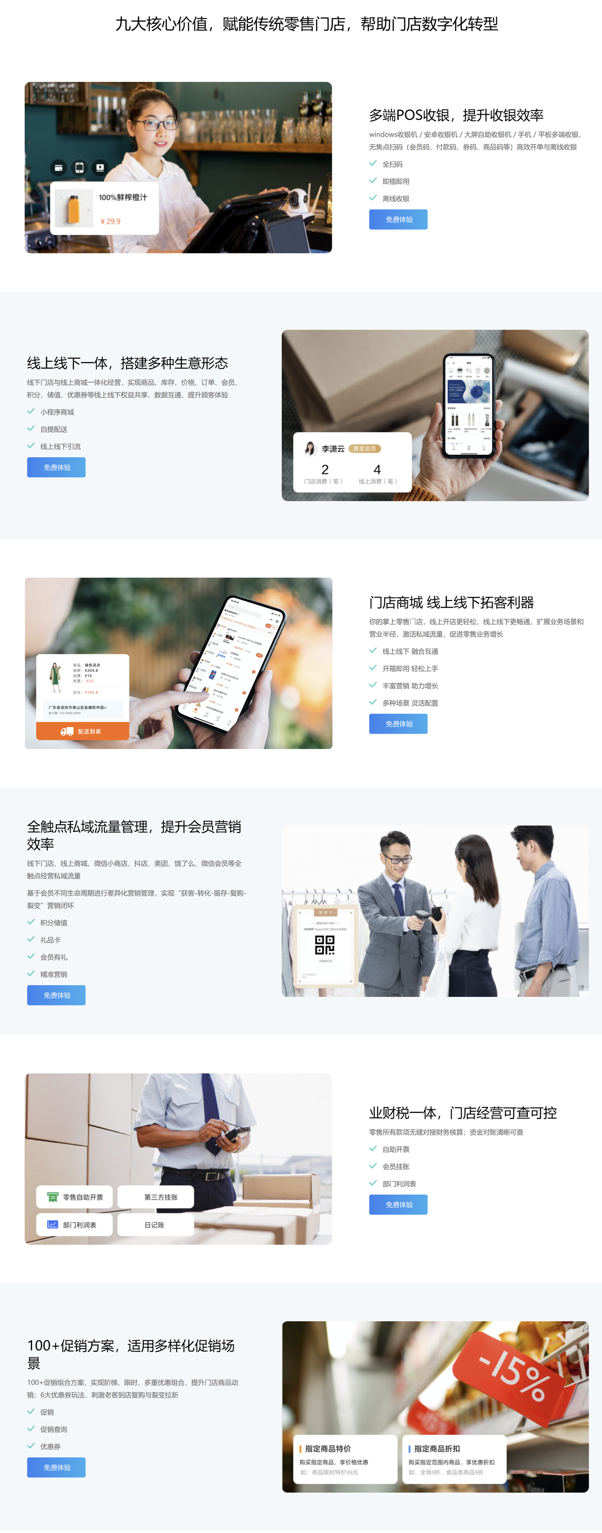 线上线下一体化经营 高效收银,极致营销,智能要货配货,轻松搞定门店经营 九大核心价值,赋能传统零售门店,帮助门店数字化转型